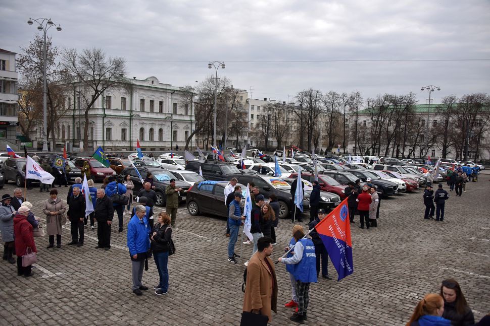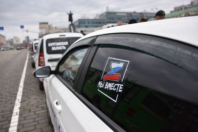 Участников автопробега сегодня встречали на площади 1905 года в Екатеринбурге. Здесь собрались более 200 машин и более 500 человек.
