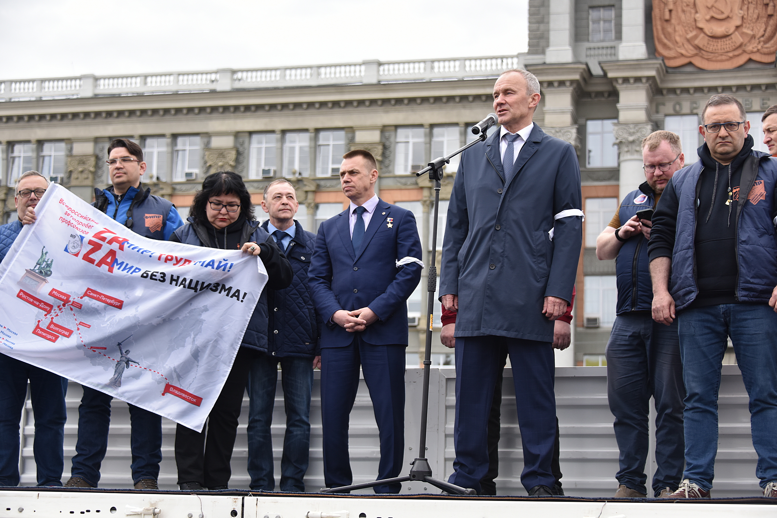 «Екатеринбург – это точка, где к автопробегу присоединятся пять автомобилей от Уральского федерального округа. В таком составе мы дальше через Уфу и Казань направимся в Нижний Новгород, оттуда 20 автомобилей до 1 мая должны въехать в Москву, где несколько колонн соединятся, и отправятся в Волгоград для празднования Дня Победы», – рассказал руководитель автопробега, заместитель председателя Федерации независимых профсоюзов России Александр Шершуков.