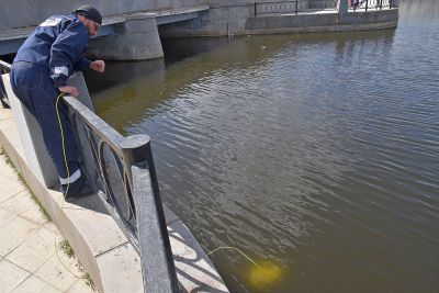 Водолазы обследовали бетонные конструкции городской плотины в Екатеринбурге. Фото