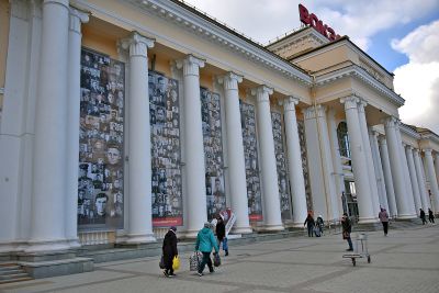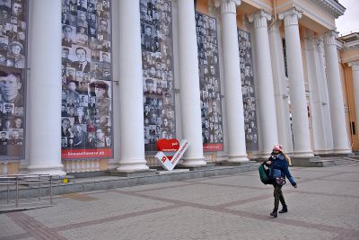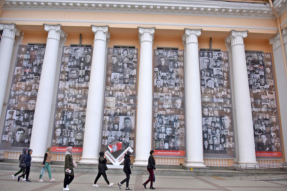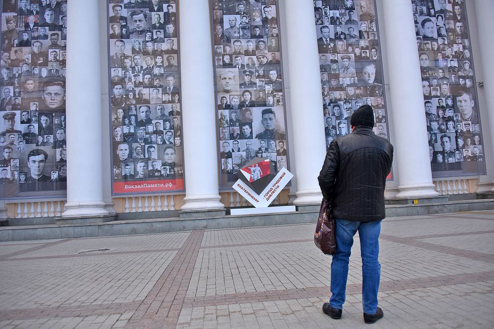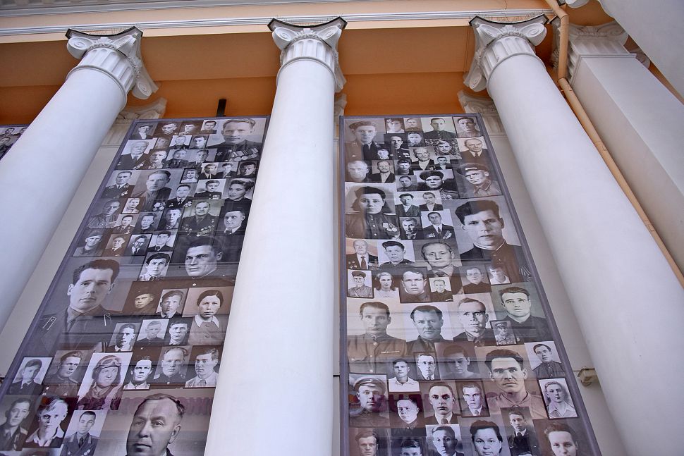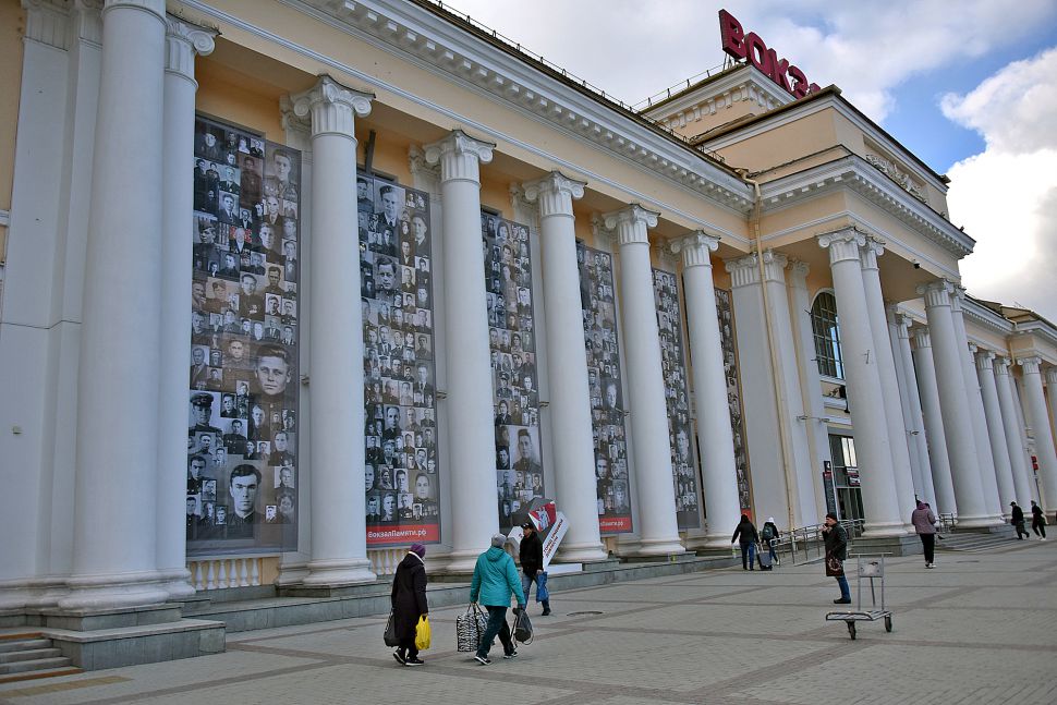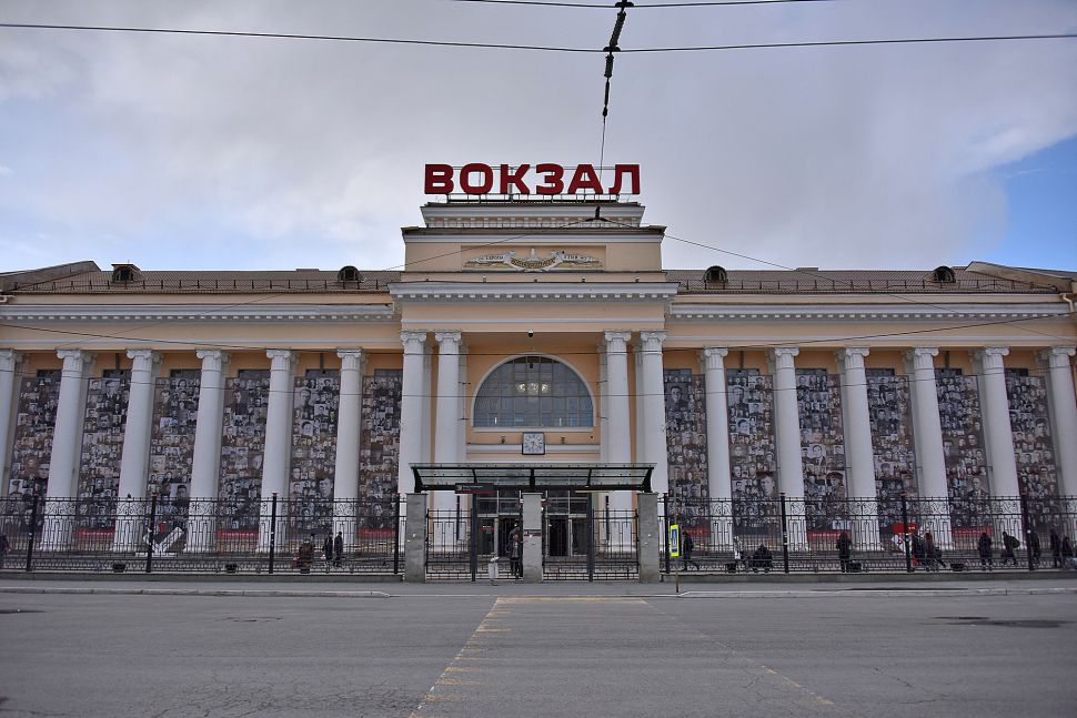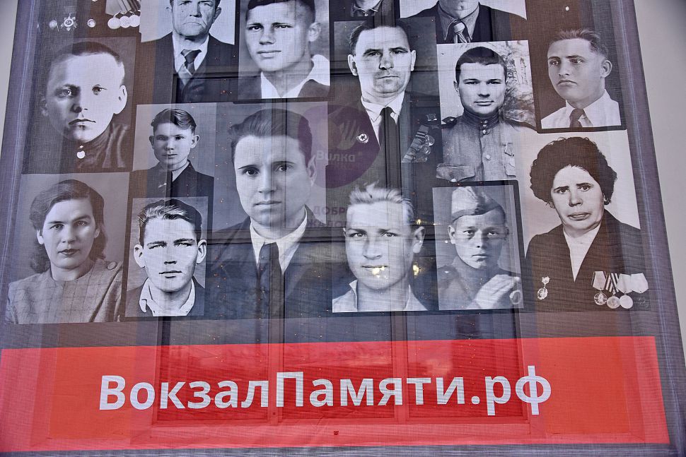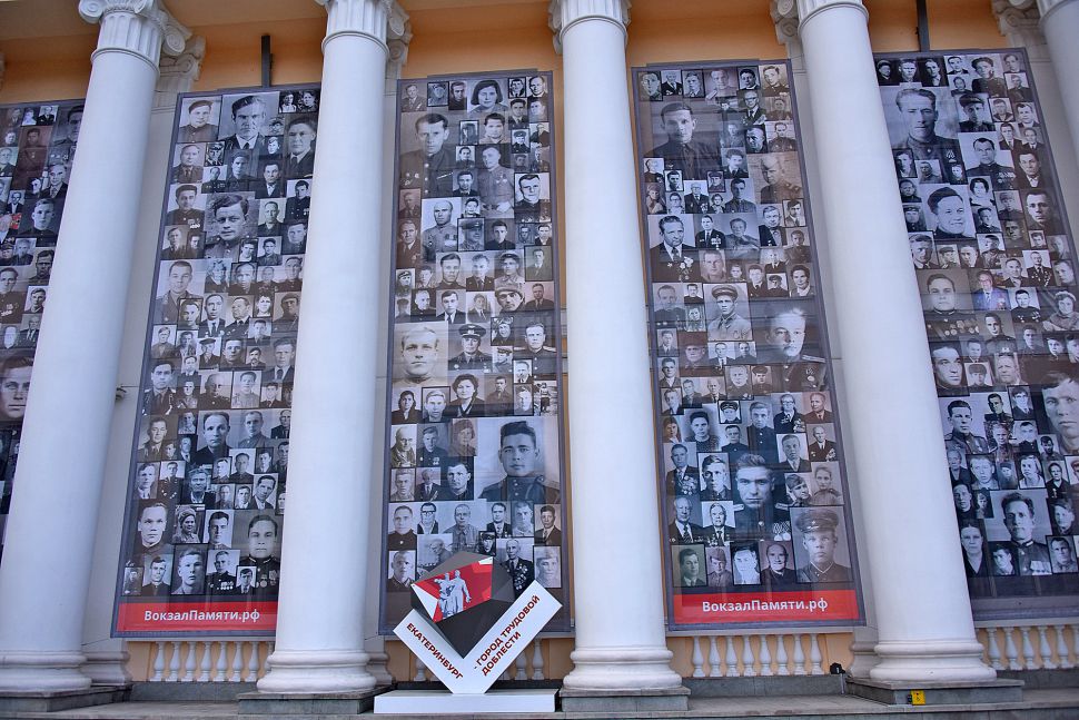Фасад вокзала в Екатеринбурге украсили портреты 850 героев Великой Отечественной войны. Фото