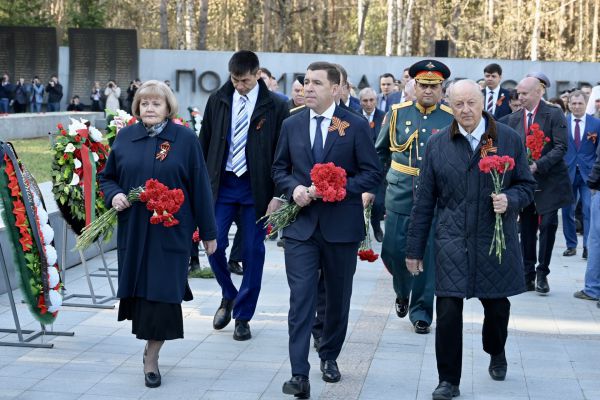 Вместе с губернатором Евгением Куйвашевым цветы к подножию памятника возложили врио командующего войсками Центрального военного округа Рустам Миннекаев,