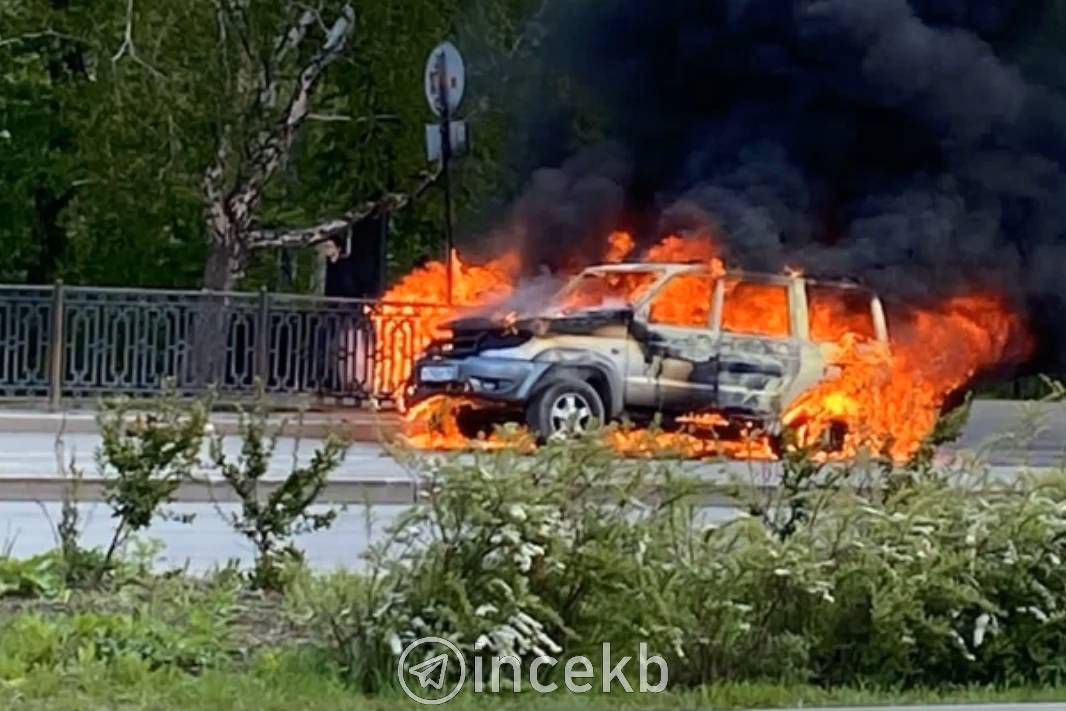 В центре Екатеринбурга вспыхнул внедорожник
