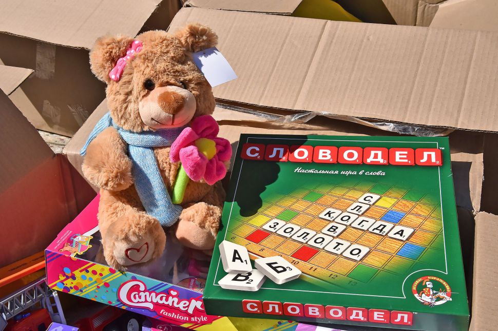 Книги, раскраски, сладости, мягкие игрушки, конструкторы получили около 60 детей.