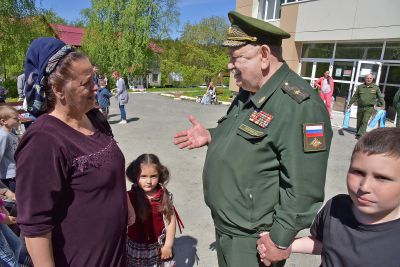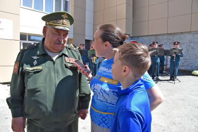 В День защиты детей военнослужащие Центрального военного округа и волонтеры вручили подарочные наборы семьям, которые покинули Донбасс на время проведения специальной военной операции.