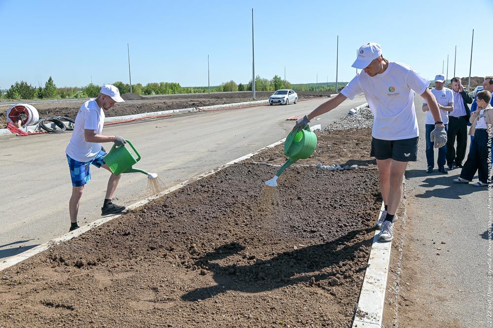 На разделительной полосе заложили газон, который будет выращиваться с применением инновационного препарата отечественной разработки.