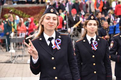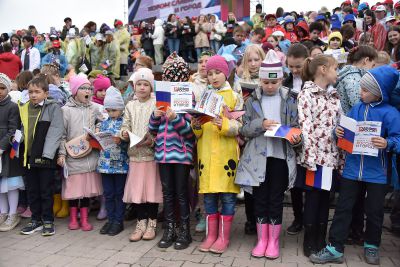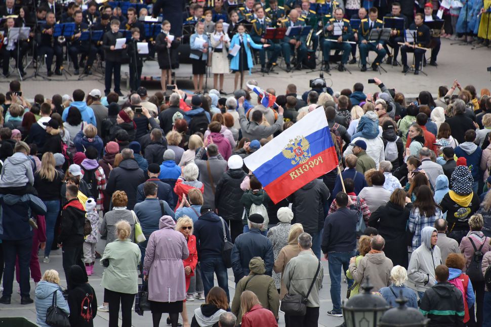 Праздник начался в 10 часов утра с церемонии подъема российского флага на Октябрьской площади.