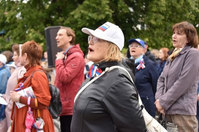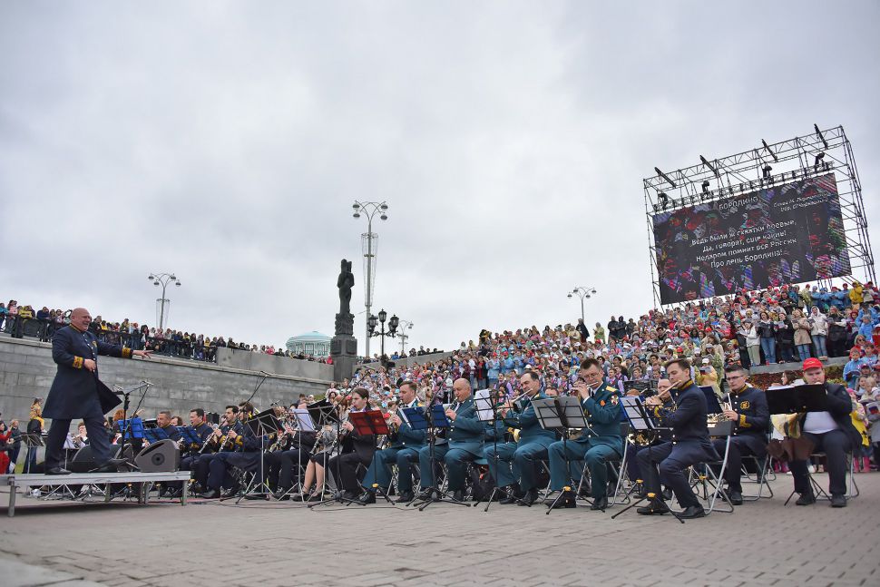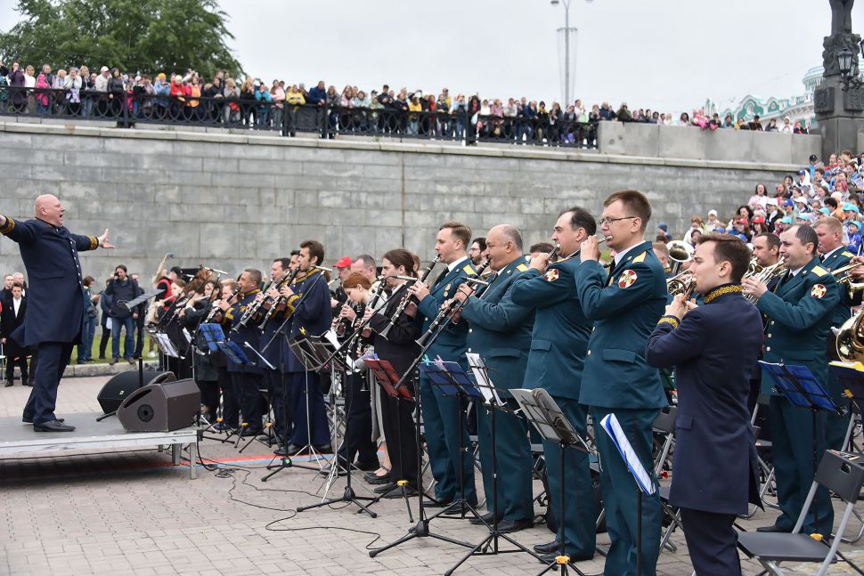 В 12 часов в Историческом сквере начался концерт «Хором славим Россию и город!». Сводный тысячный хор музыкальных коллективов Екатеринбурга под аккомпанемент духового оркестра исполнил популярные песни. Присоединиться к профессиональным музыкантам могли все желающие – тексты песен транслировался на мультимедийном экране в формате караоке.