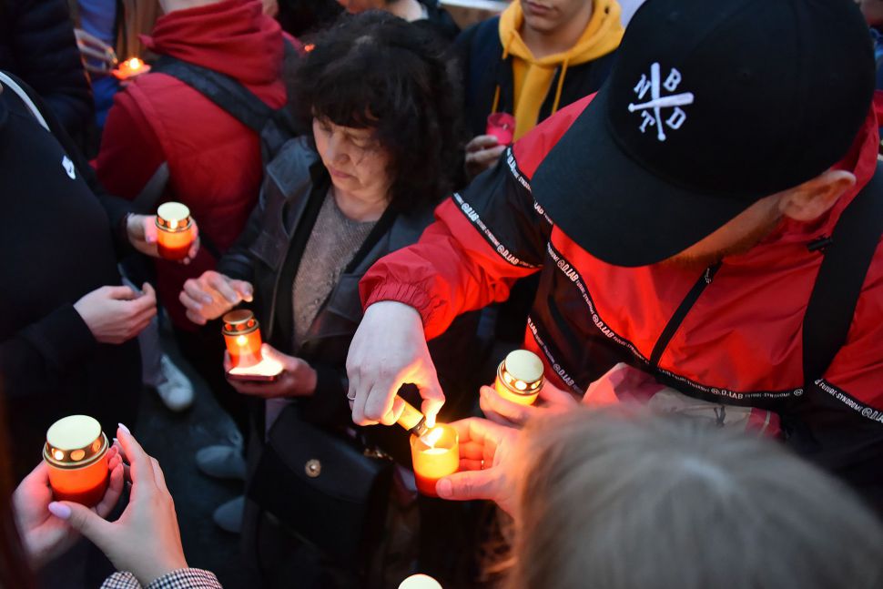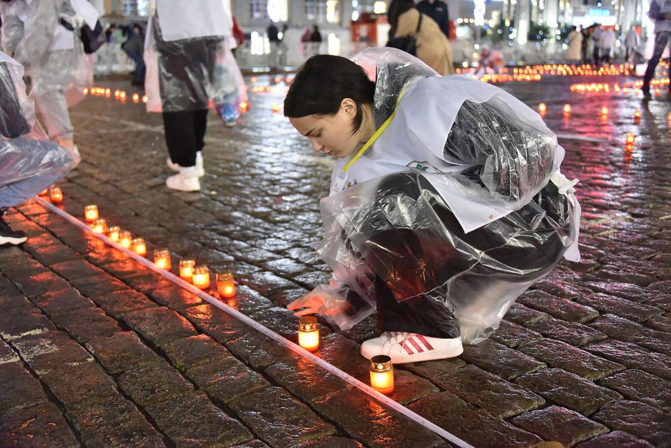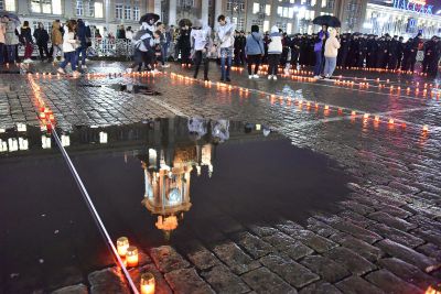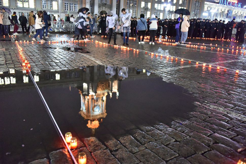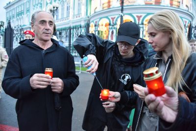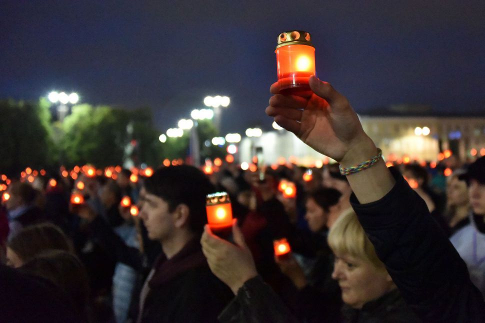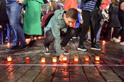 Акция завершилась минутой молчания, после чего участники акции выложили из зажженных свеч слово «Помним».