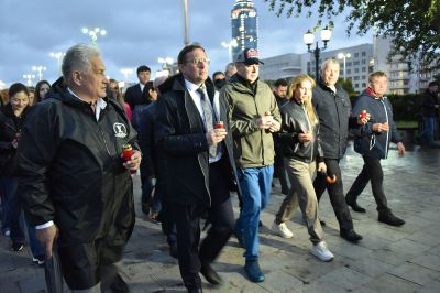 Уральцы по традиции со свечами в руках прошли по пешеходной зоне вдоль проспекта Ленина от Главпочтамта до площади 1905 года.