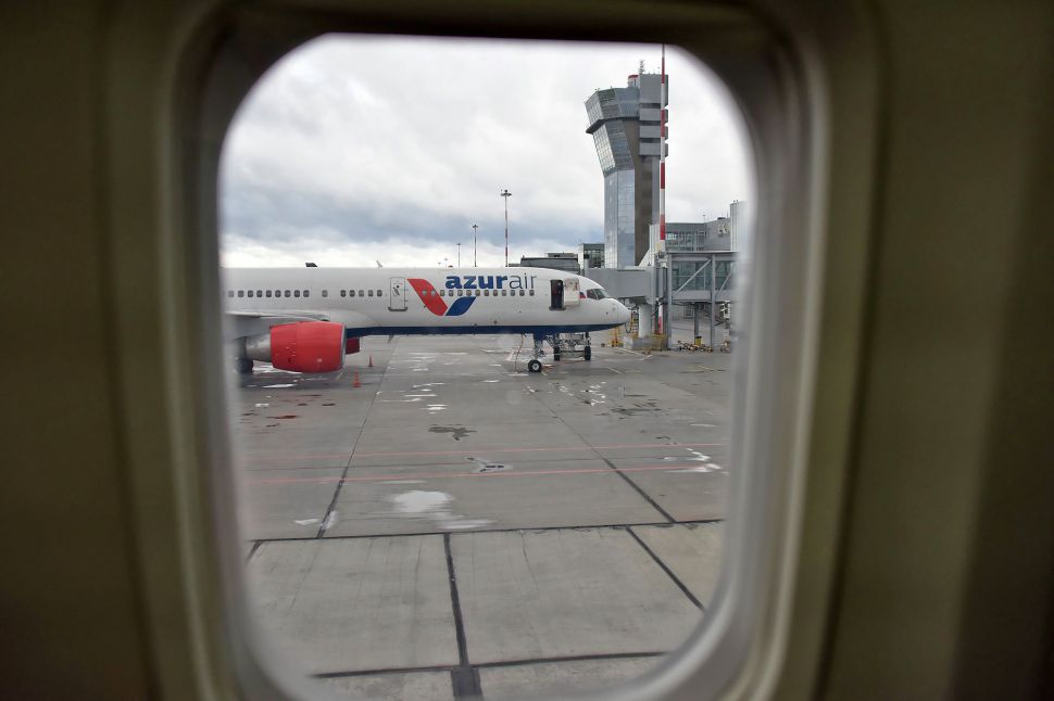 Этот самолет авиакомпании AZUR air рассчитан на перевозку 72 пассажиров в салоне бизнес-класса.