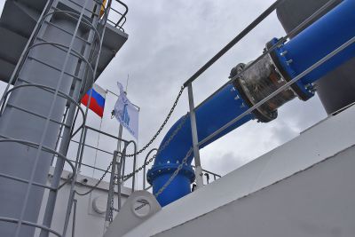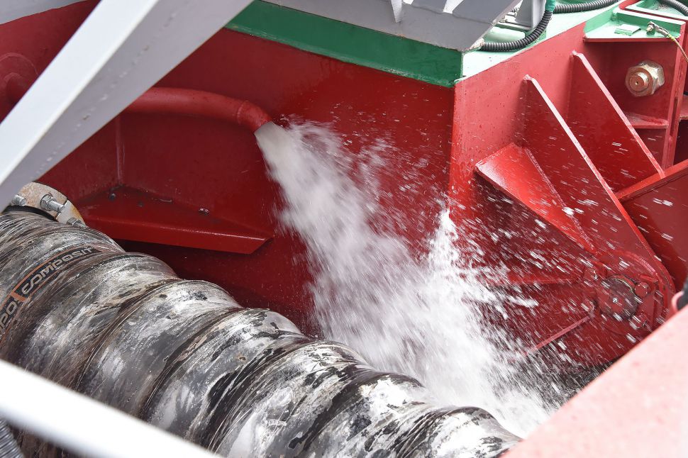 Поднятые донные отложения попадают в пульпопровод, который проложен как по воде, так и по суше. Его общая длина составляет около 3,5 километра. По пульпопроводу донные отложения доставляются на площадку складирования. По пути в смесь добавляется безопасный для здоровья человека реагент — флокулянт, который отделяет воду от ила.