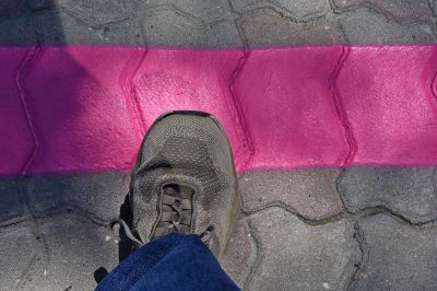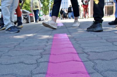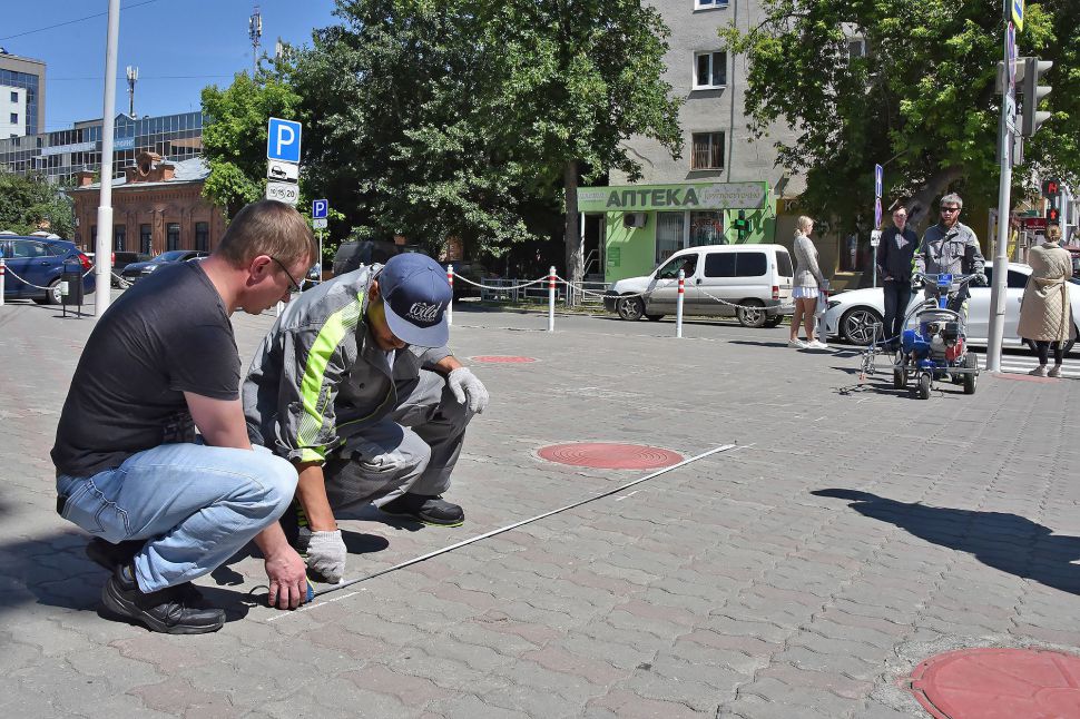 Мероприятие началось сегодня на пересечении улиц Попова и Хохрякова, где журналисты стали свидетелями обновления известного городского маршрута – фиолетовой пунктирной линии, объединяющей работы участников фестиваля за разные годы.