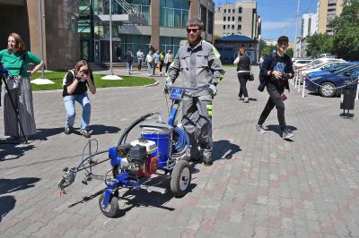 Еще один гость из Москвы Дмитрий Ламонов завершает раскраску двух резервуаров.