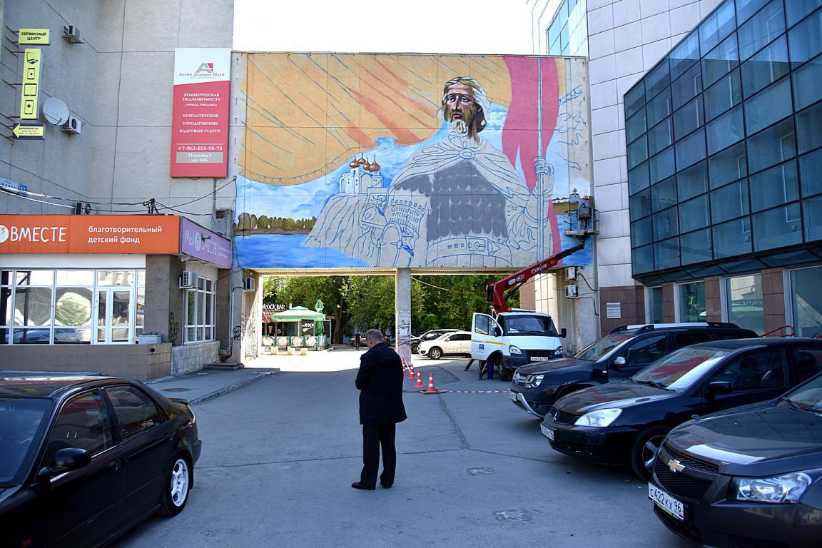 В центре Екатеринбурга закрасят граффити с Александром Невским