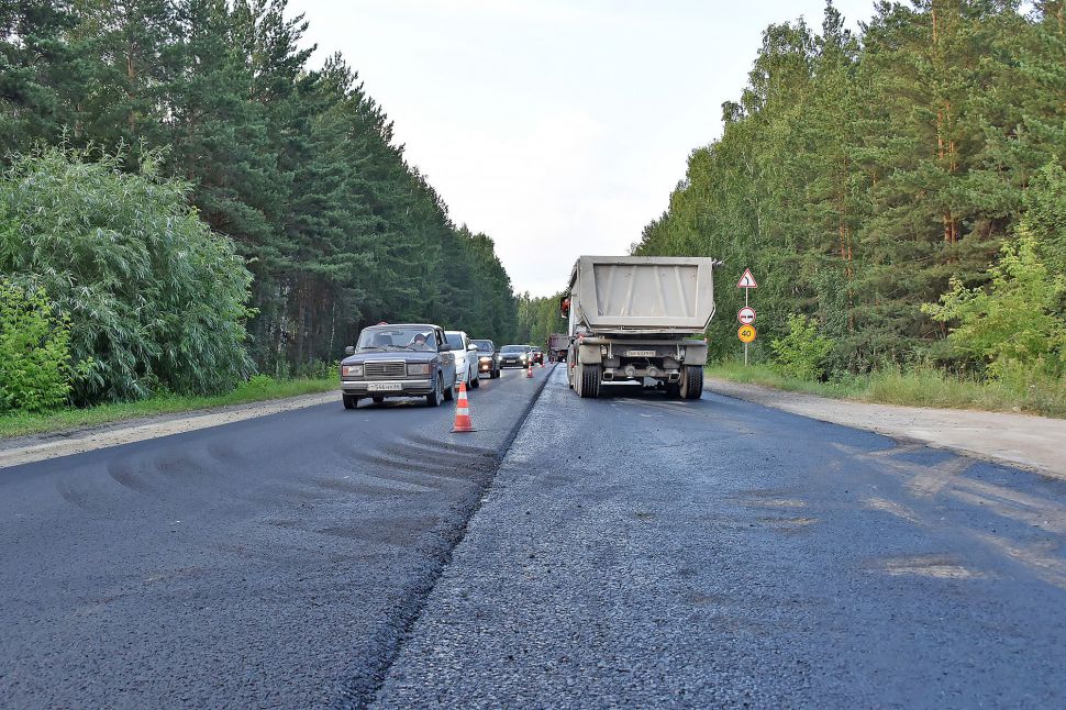 Для испытаний «вечного» асфальта выбрали участок Арамильского тракта. Здесь высокая интенсивность движения, около 30 тысяч автомобилей в сутки, и жесткие условия эксплуатации.