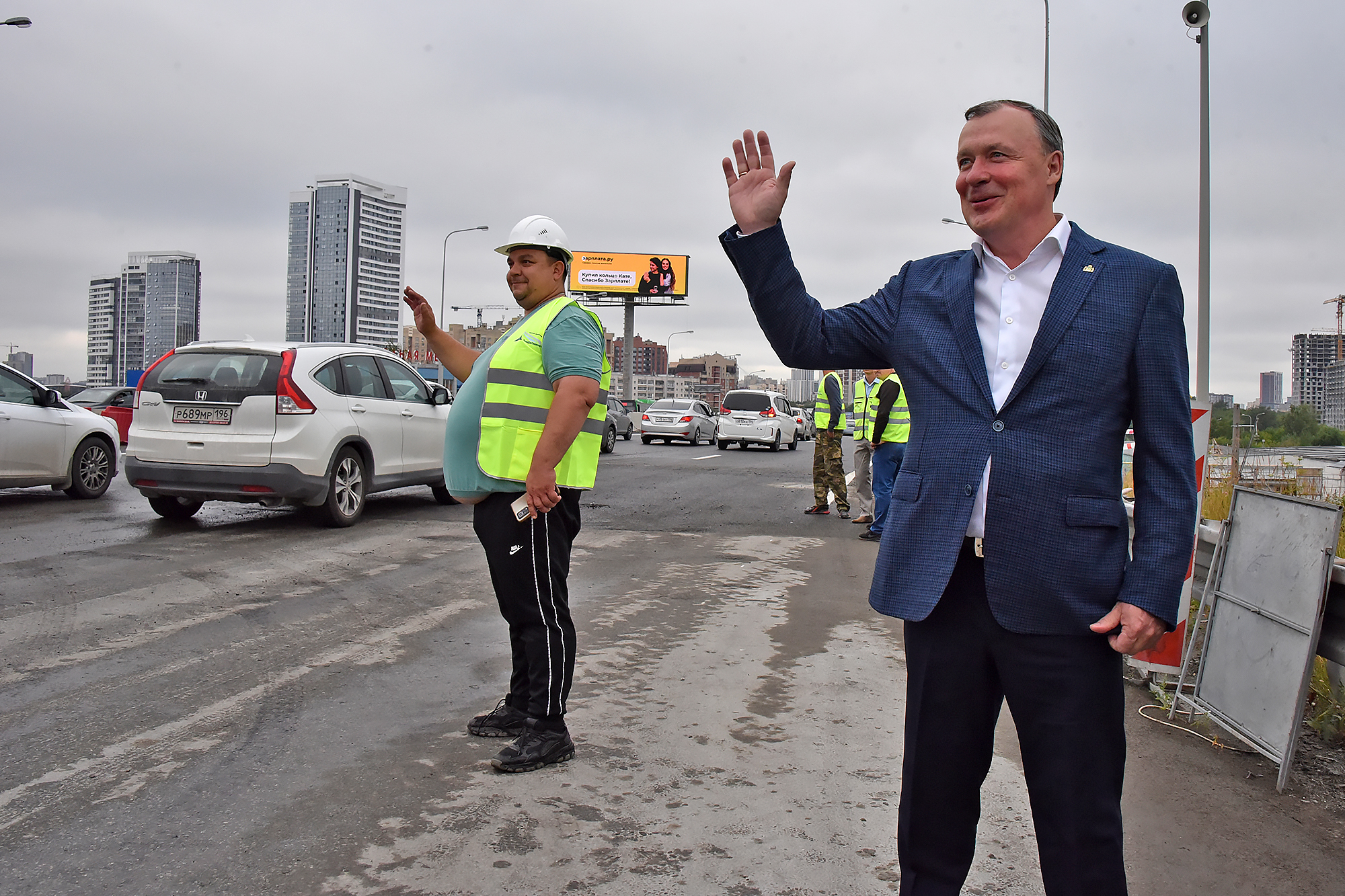 На открытие сквозного движения на путепроводе приехал глава города Алексей Орлов.