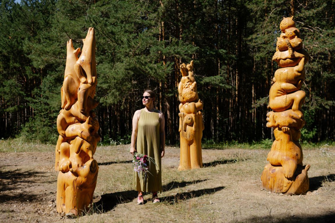 «Городские идолы» установили на Уктусских горах в лесу участники фестиваля «ЧО». Арт-объект представляет собой четыре деревянных тотема высотой три метра с изображением кошек и собак. Автор – художница Наталья Пастухова.