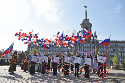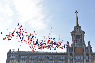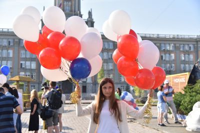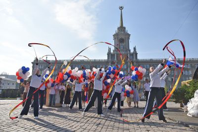 В рамках празднования Дня государственного флага РФ на площади 1905 года горожане запустили в небо 350 воздушных шаров с символикой государственного флага. Участники акции также раздавали российский триколор жителям и гостям региона.