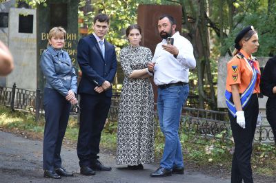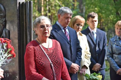 «Рассматривали много вариантов фотографий, но выбрали именно эту. На ней ему около 56 лет. Он тогда был полон сил, работал в „Каравелле“, у него было много планов и романов впереди. Он был гениальным человеком. Мы с ним прожили 56 лет, я ни разу не видела, чтобы он бездействовал. Мои дети выросли под звук пишущей машинки», — вспомнила вдова писателя Ирина Крапивина.