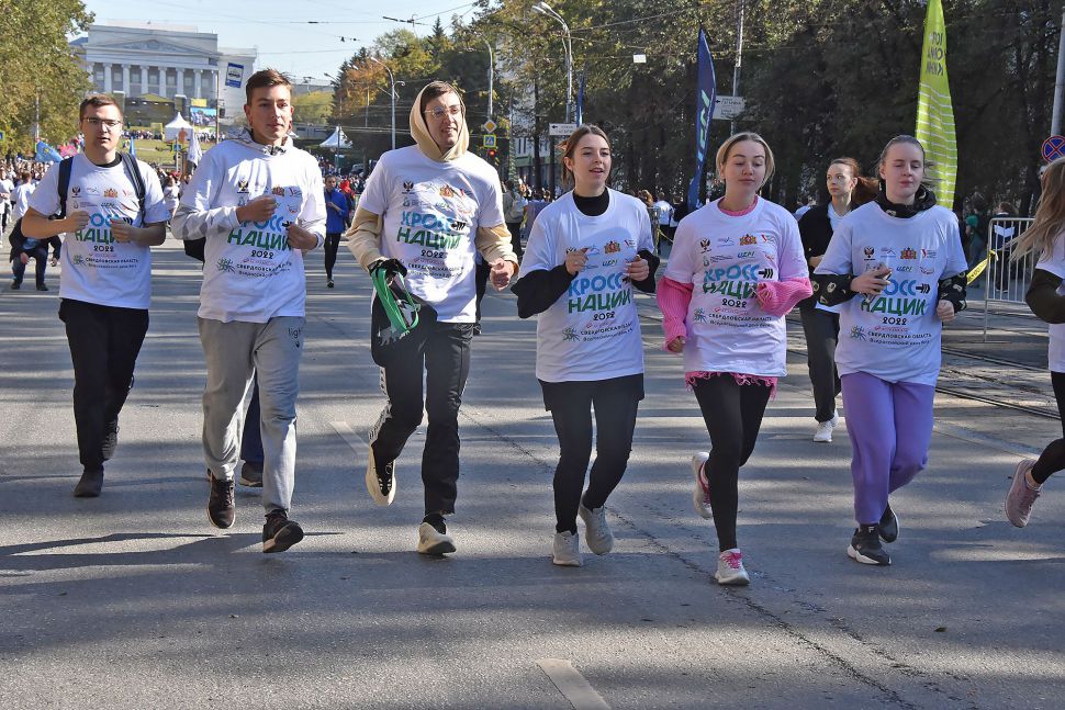 Также к «Кроссу нации» в Екатеринбурге присоединились команды всех районов города и вузов, семьи, трудовые коллективы, иностранные студенты, спортсмены с ограниченными возможностями здоровья, представители правительства региона и администрации города.