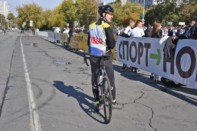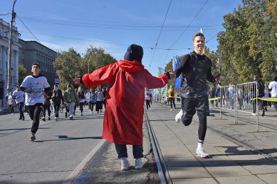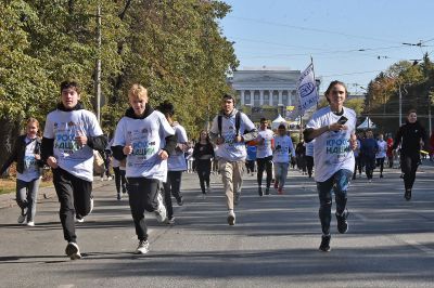 Первые спортсмены вышли на дистанцию в 9 утра, чтобы преодолеть два километра по главной улице города — проспекту Ленина.