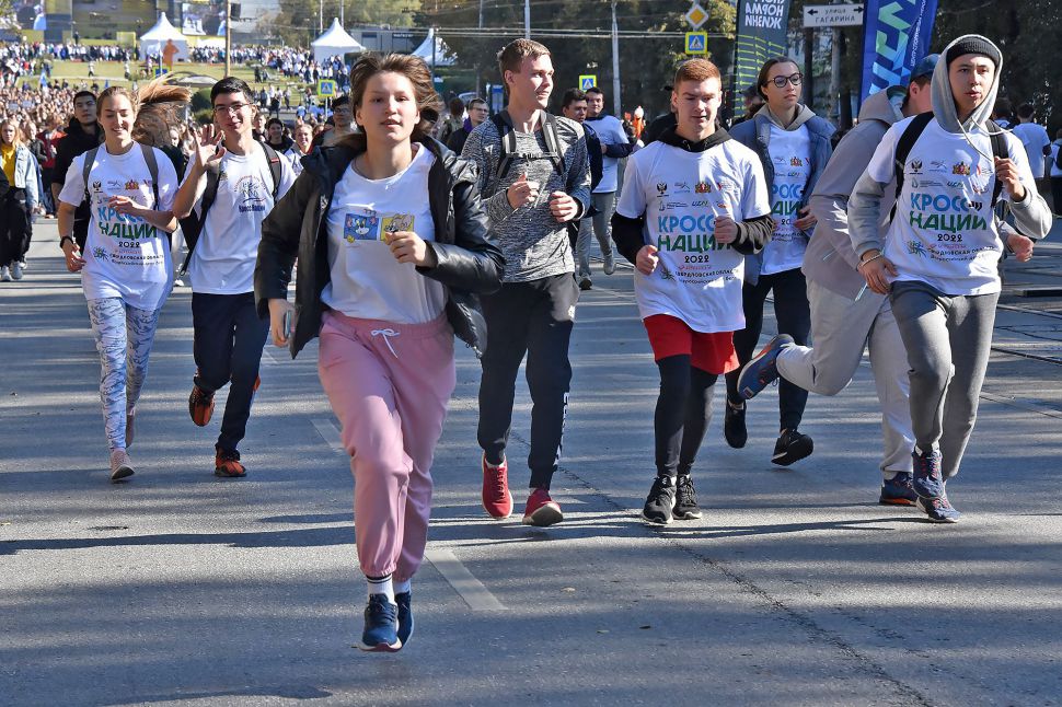 Участники «Кросса нации – 2022» по традиции получили футболки с символикой праздника.