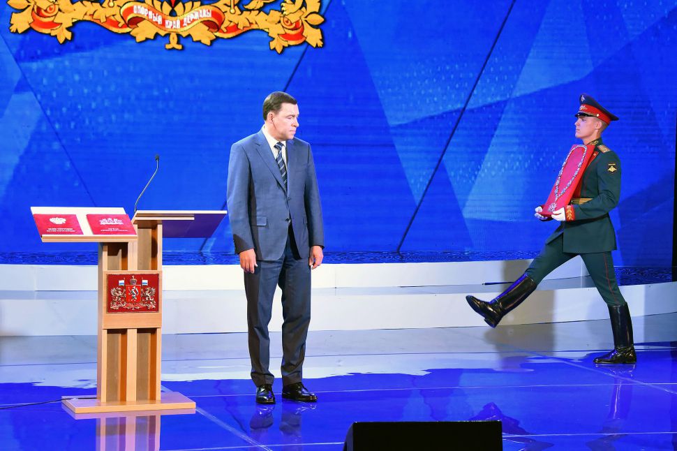 После этого Евгений Куйвашев, положив руку на Конституцию и устав региона, зачитал присягу: