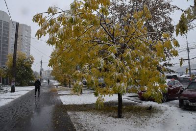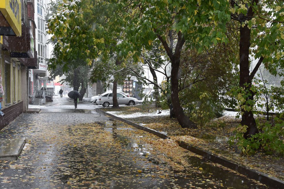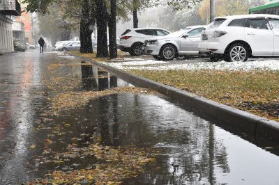 В уральской столице сегодня, 26 сентября, выпал первый снег. О погодных изменениях свердловчан предупредили синоптики и сотрудники МЧС.