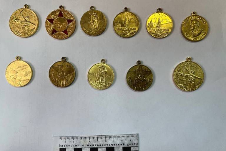 По данным пресс-службы управления на транспорте МВД России по УрФО свердловчанин хотел сбыть награды: «20 лет Победы в Великой Отечественной войне 1941–1945», «30 лет Победы в Великой Отечественной войне 1941–1945» и «40 лет Победы в Великой Отечественной войне 1941–1945» в двух экземплярах каждая, «50 лет Вооружённых сил СССР», «60 лет Вооружённых сил СССР», «За победу над Германией в Великой Отечественной войне 1941–1945 гг.» и две медали «50 лет Победы в Великой Отечественной войне 1941–1945». Их изъяли.