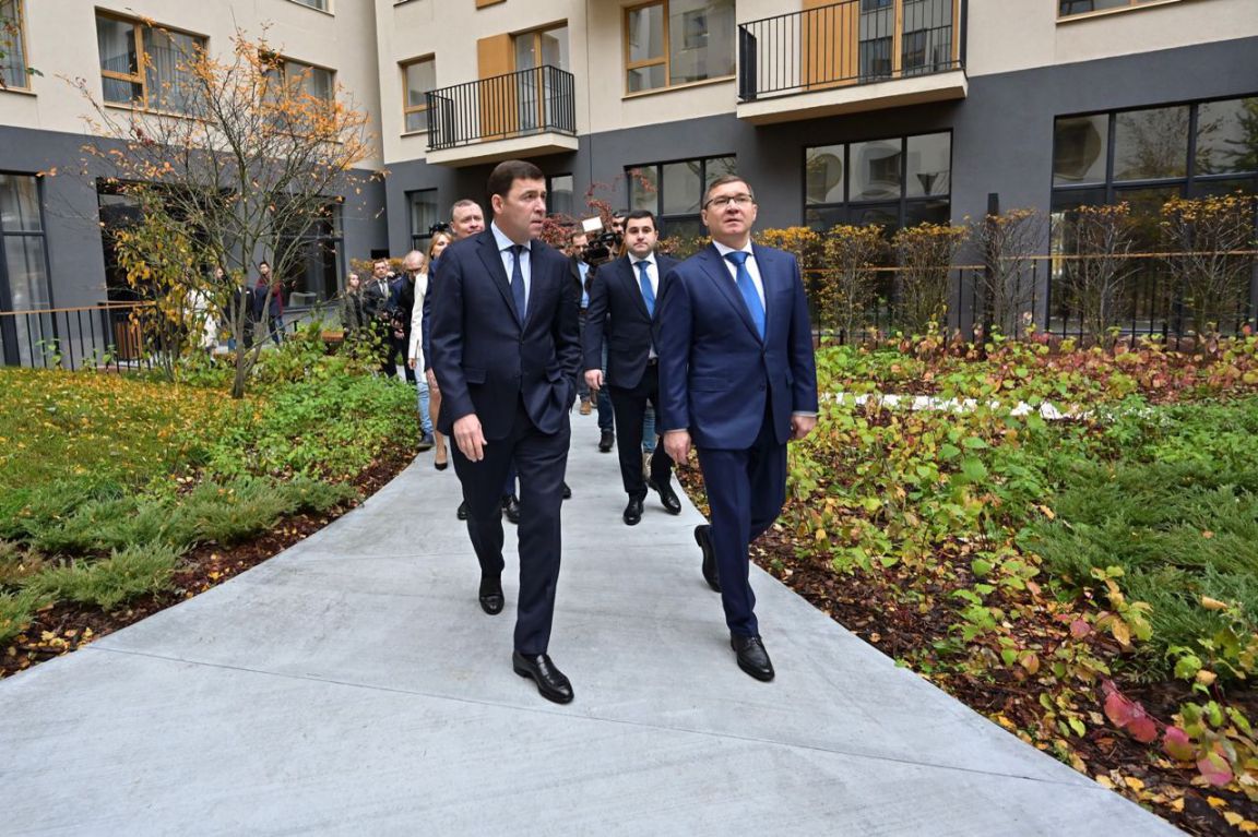 Глава региона посетил новостройку вместе с полномочным представителем Президента России в УрФО Владимиром Якушевым и заместителем генерального директора ДОМ.РФ Денисом Филипповым.