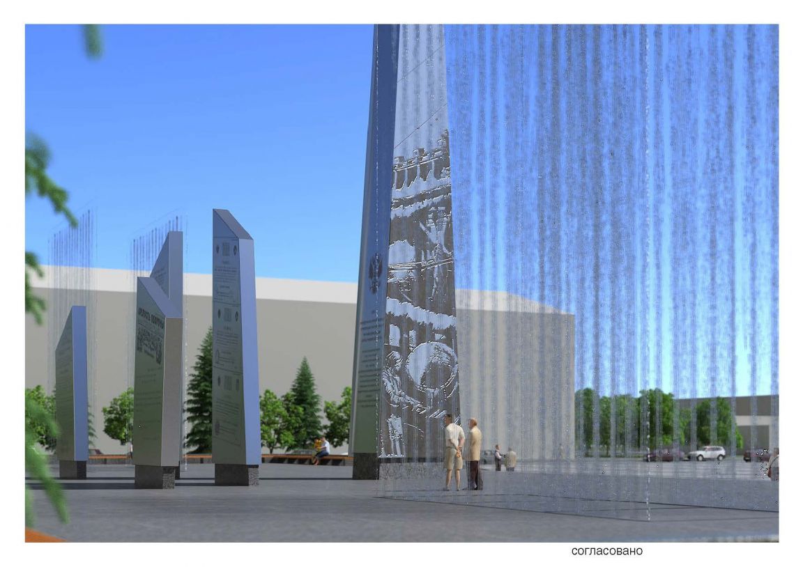 Стелу разместят на месте фонтана «Одуванчик», но и без фонтана площадь не останется. Вместо него построят другой, без чаши для воды, струи будут бить прямо из земли.