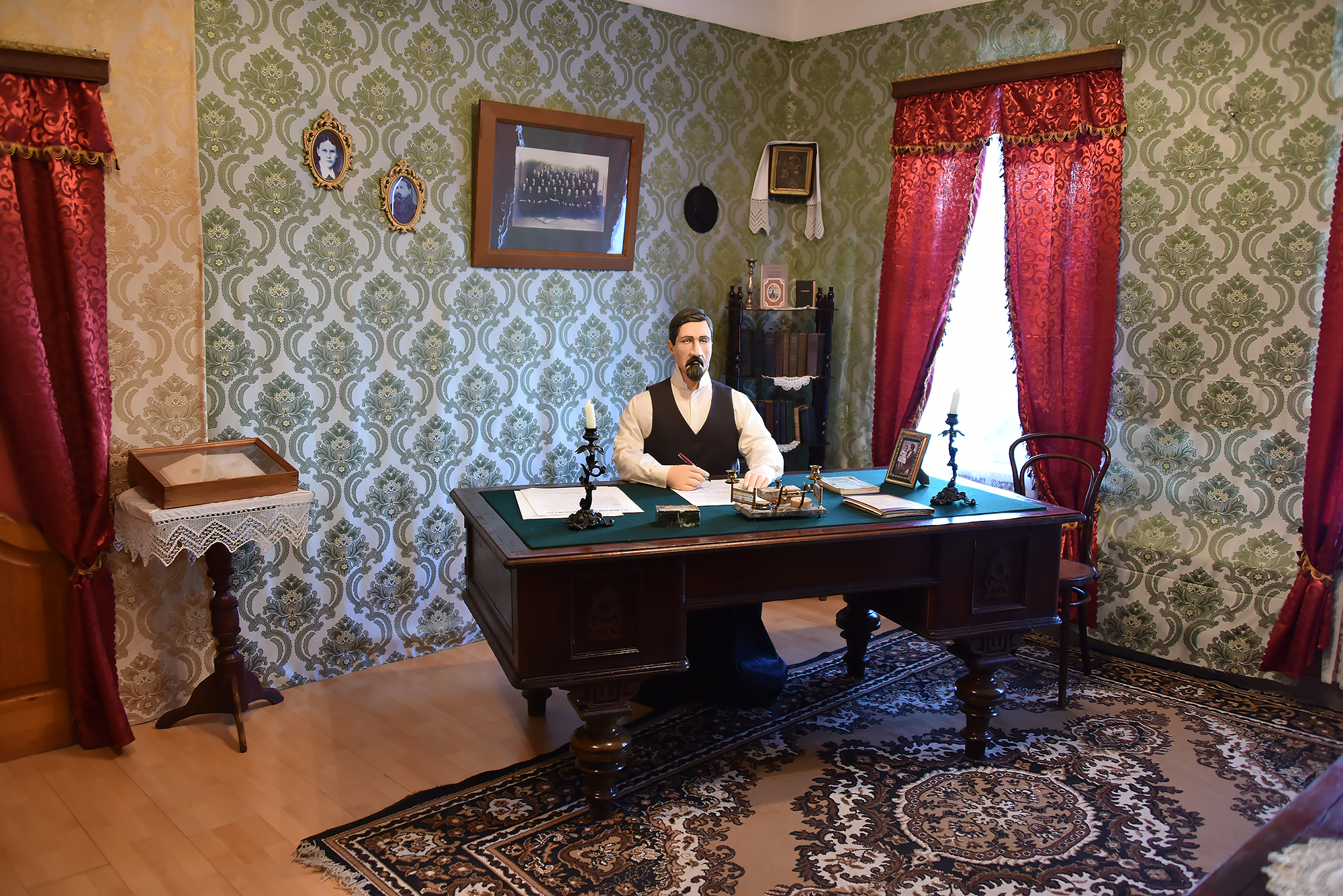 В Ирбитском музее истории техники есть даже рабочий кабинет Мамина-Сибиряка, где Дмитрий Наркисович сидит за столом, за которым когда-то писал, останавливаясь в Ирбите. Рядом висит икона из дома, где он жил, и лежит книга «Фрегат „Паллада“».