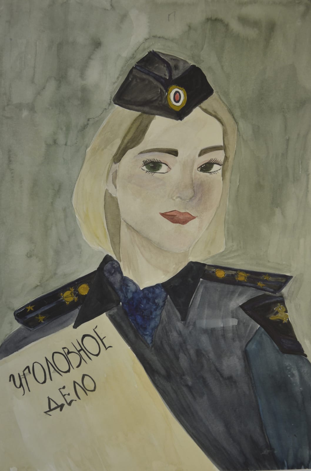 София Кордюкова из Серова, которой четырнадцать лет, нарисовала маму с уголовным делом в руках. Она у нее работает следователем.