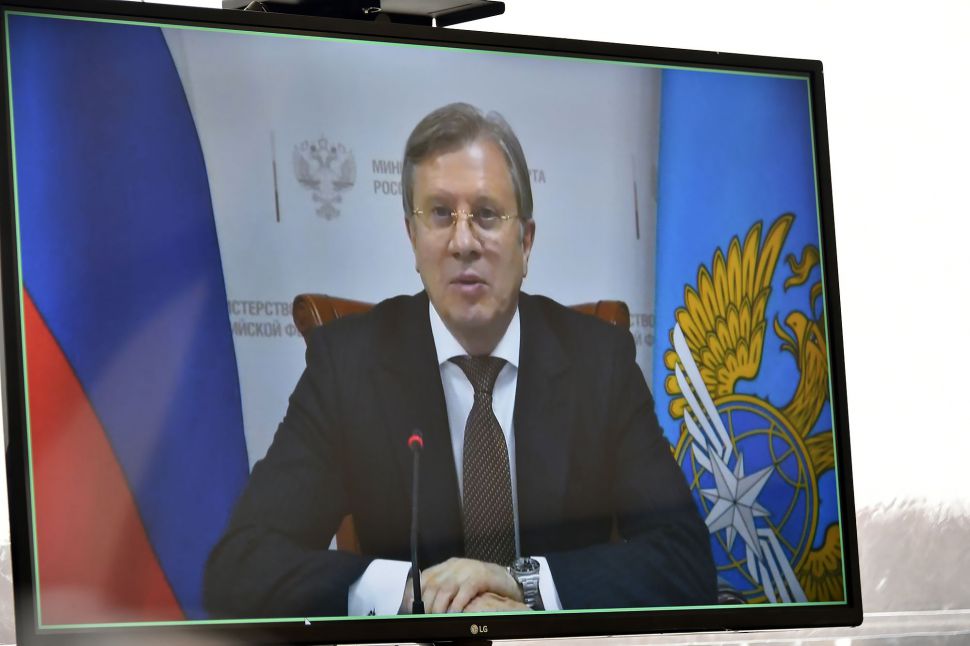 Разрешение на прием центром первого железнодорожного состава по видеоконференцсвязи дал министр транспорта России Виталий Савельев.