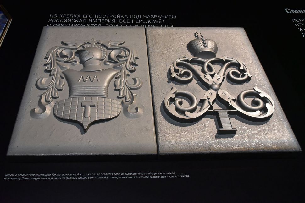 Название выставки — «Не словом, а делом» — девиз династии Демидовых, крупнейших русских промышленников, землевладельцев и меценатов XVIII–XIX веков. Исторический проект рассказывает о том, как переплелись жизни Петра Великого и Никиты Демидова.