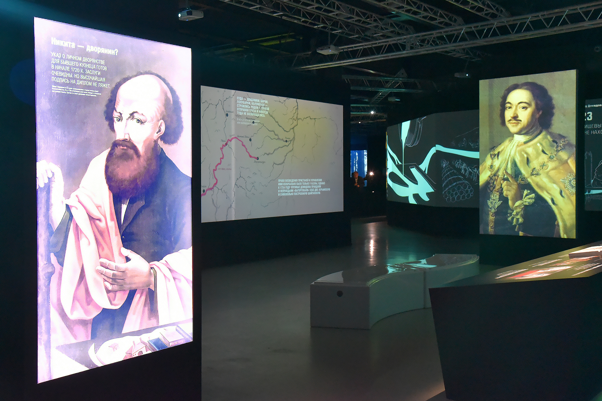 На выставке при помощи 3D-маппинга воссозданы технологии XVIII века: в залах есть 20 тачей с архивными материалами, два голографических театра, лайтбоксы, фабрика XVIII века, впервые воспроизведенная в VR, 360° панорама Невьянска петровской эпохи. Сочетание классических и инновационных решений создает многоплановый, комплексный опыт погружения в петровскую эпоху.