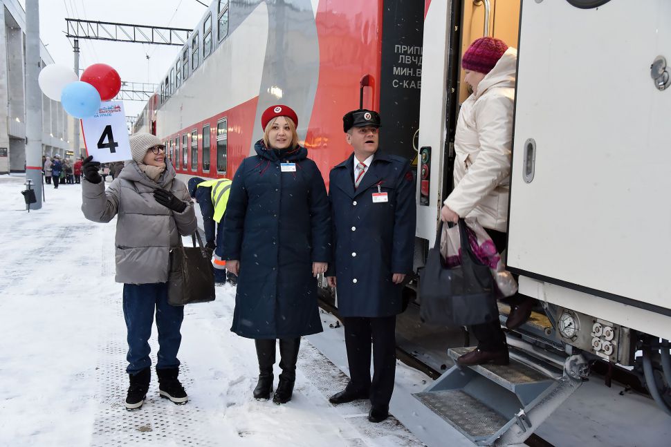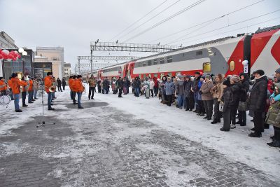 Двухэтажный туристический поезд привез первых гостей из Самары на Урал