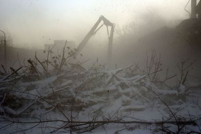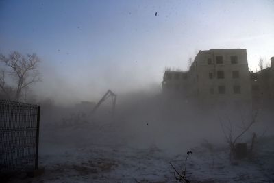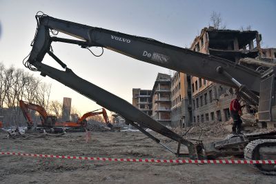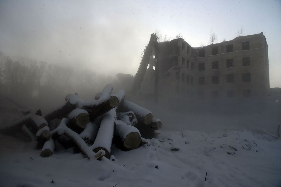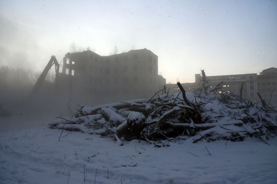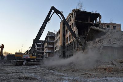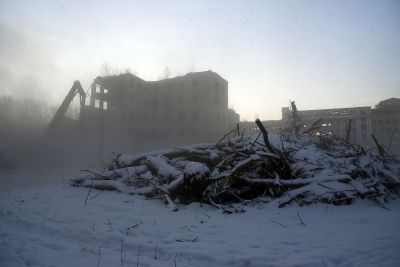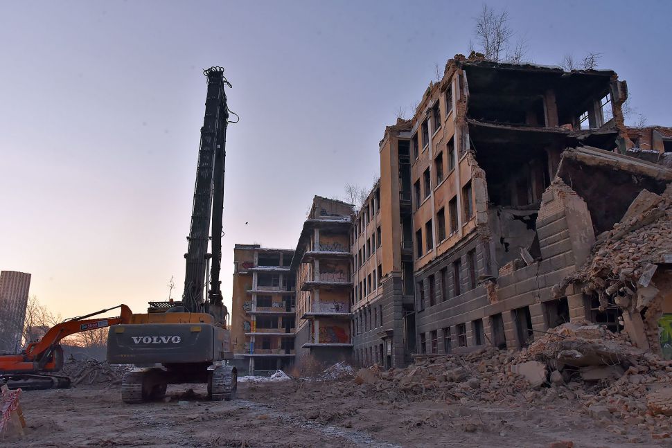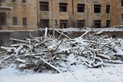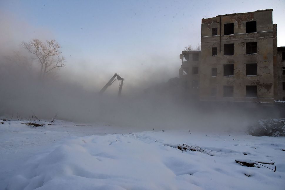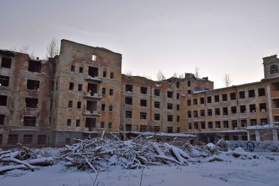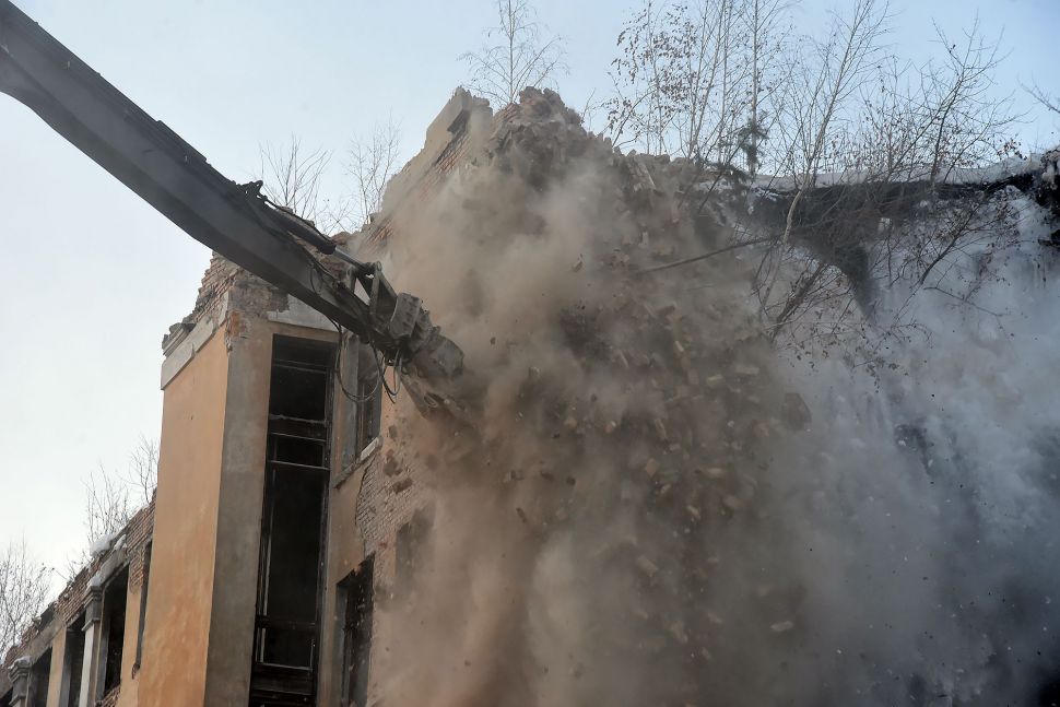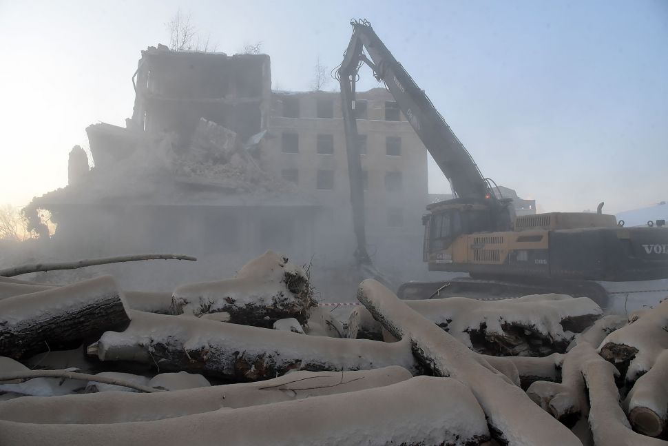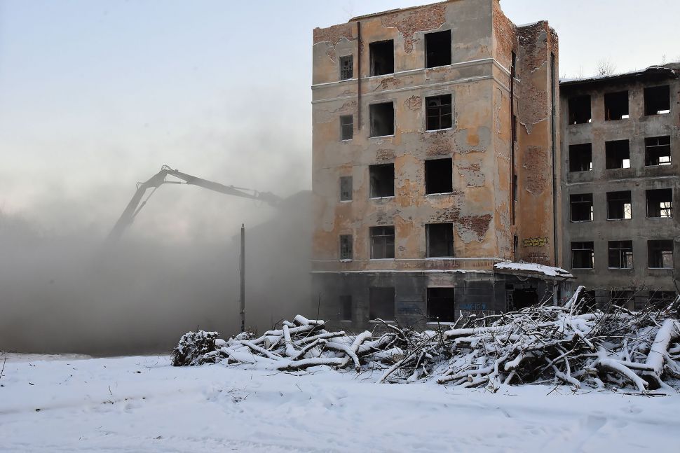Снос здания заброшенной больницы начался днем 2 декабря. На территорию, ранее огороженную и очищенную от мусора, деревьев и снега, зашла строительная техника. Планируется, что участок под строительство будет очищен до конца 2022 года.