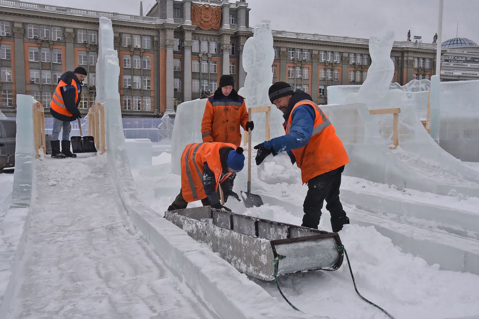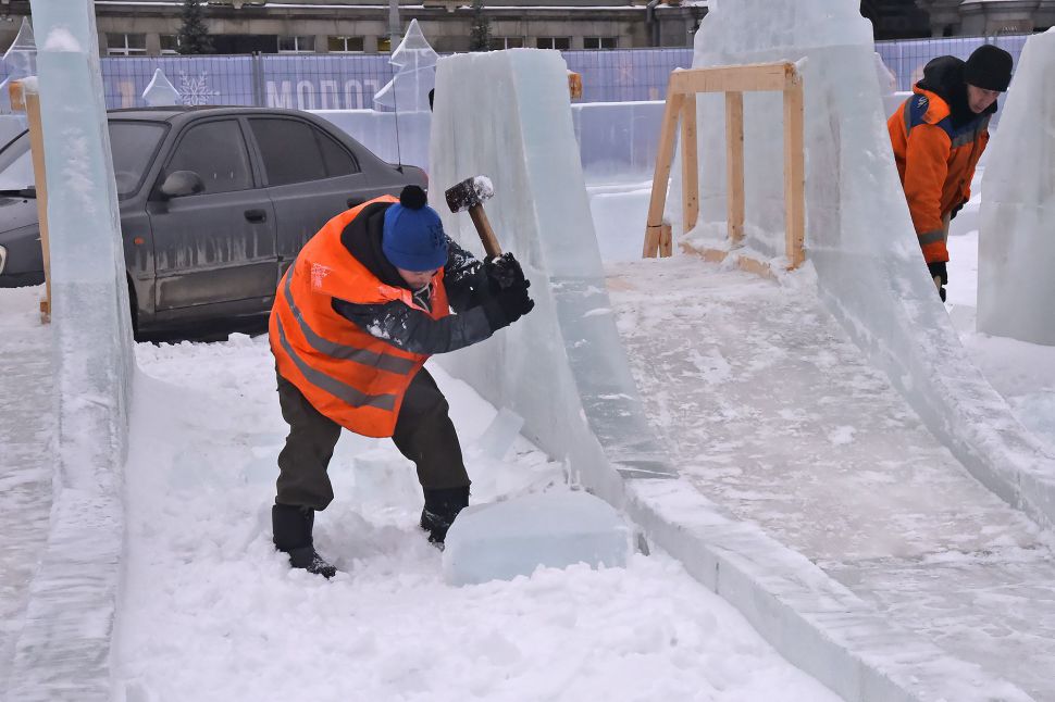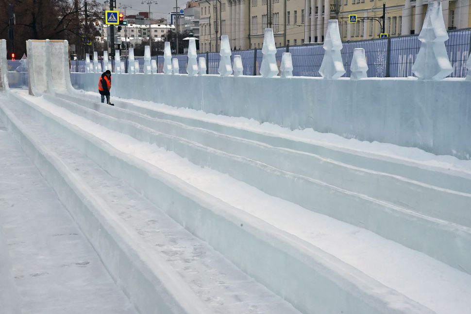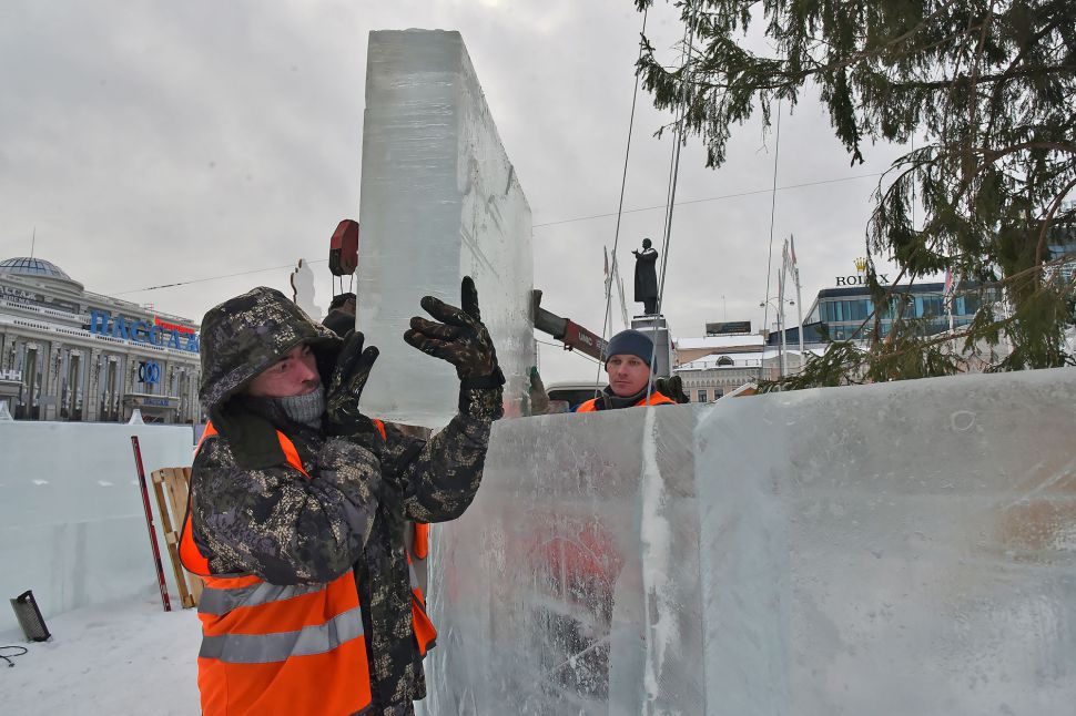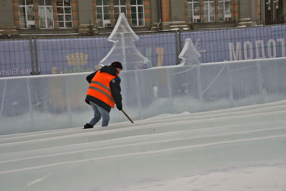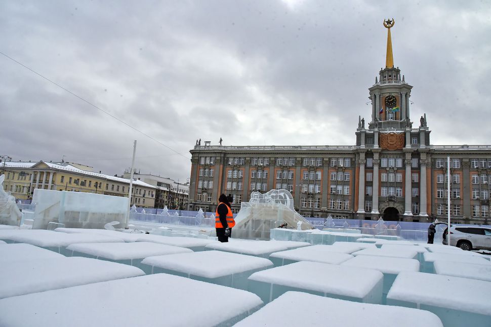 Как сообщили в мэрии Екатеринбурга, работа на главной городской площади кипит. Там уже можно увидеть карусель, горки, ледовые скульптуры и ограждение.