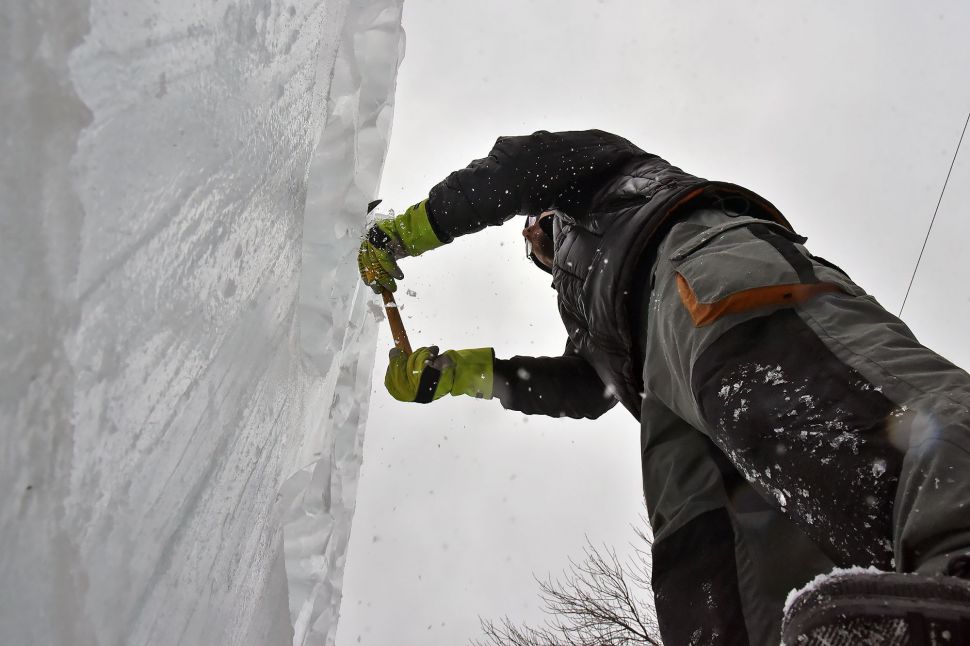 Работают художники уже две недели, ежедневно выпиливая, оттачивая и шлифуя свои скульптуры.