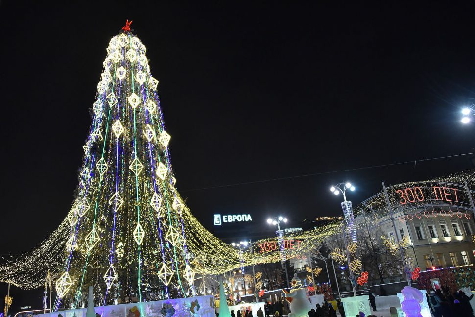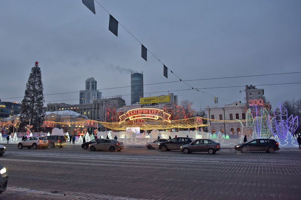 В уральской столице на Площади 1905 года зажглись огни на живой 28-метровой ели и открылся новогодний городок. Напомним, что он посвящен 300-летию Екатеринбурга.