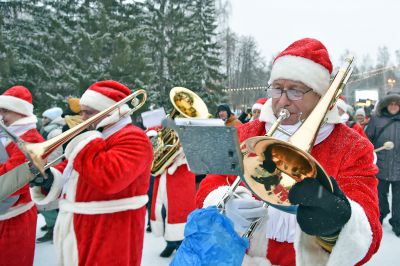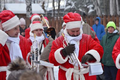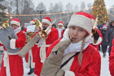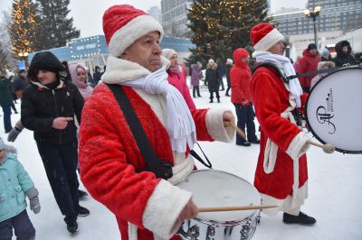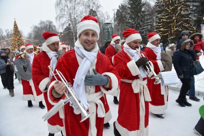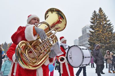 «Урал Бэнд» под управлением Александра Павлова прошел по аллеям и сыграл новогодние песни.