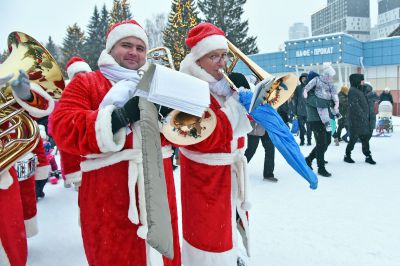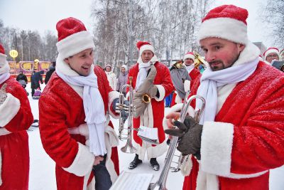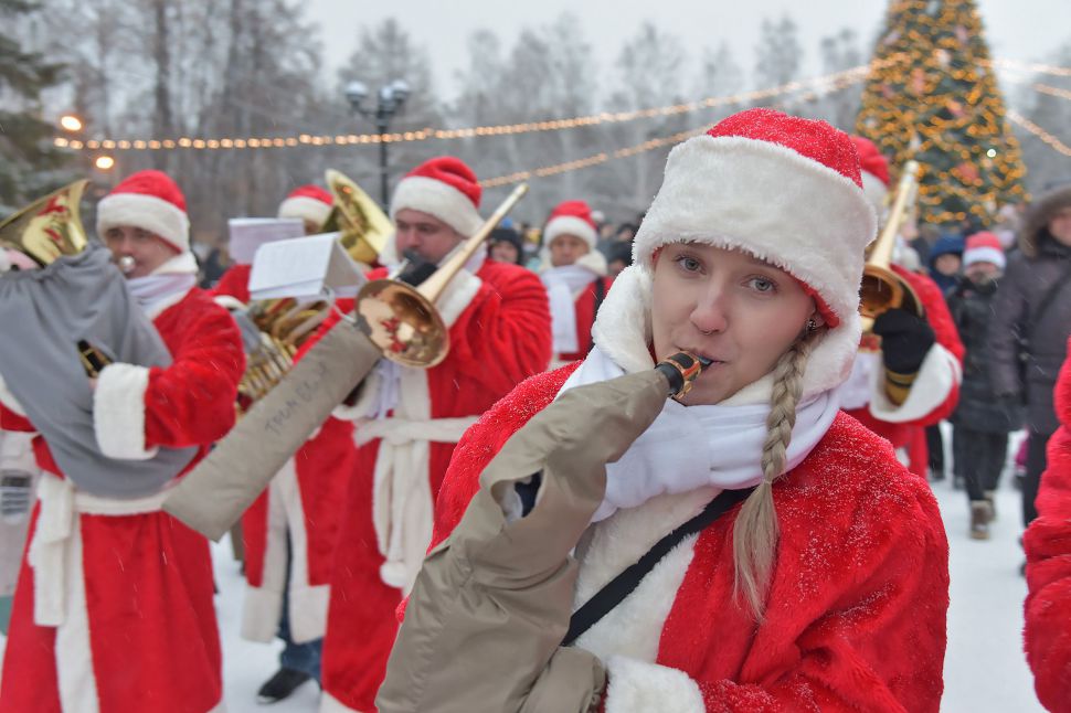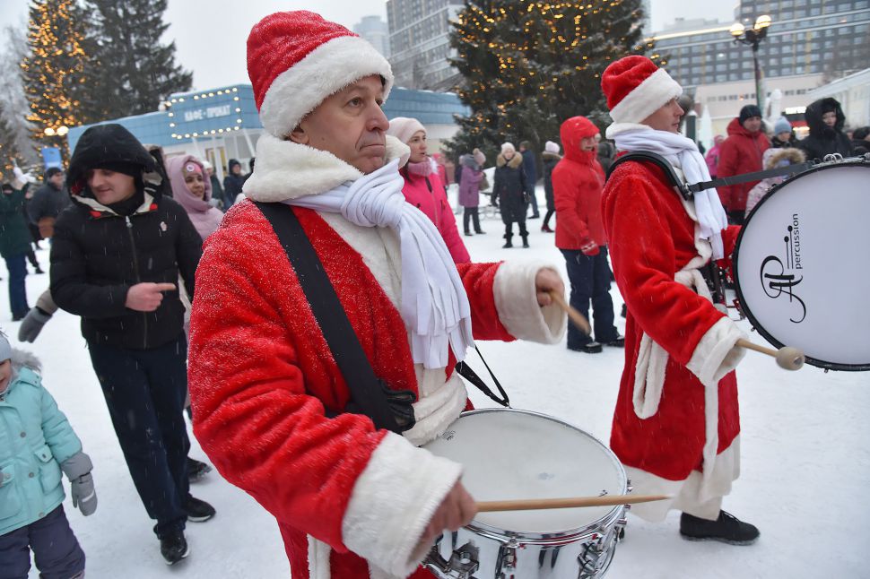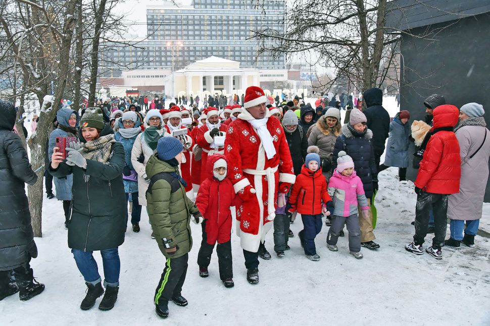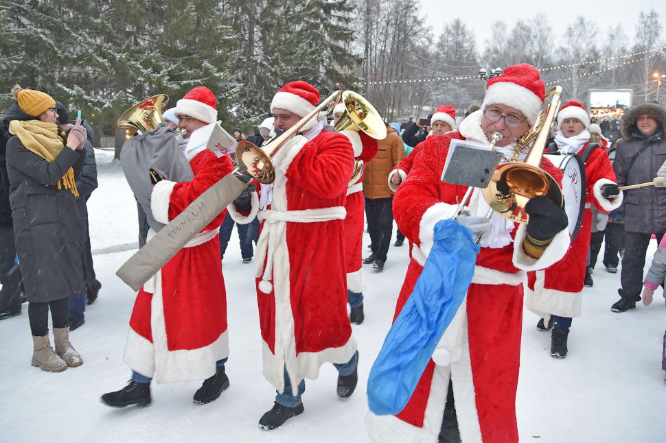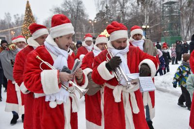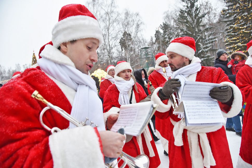 Оркестр Дедов Морозов поздравил посетителей Парка Маяковского