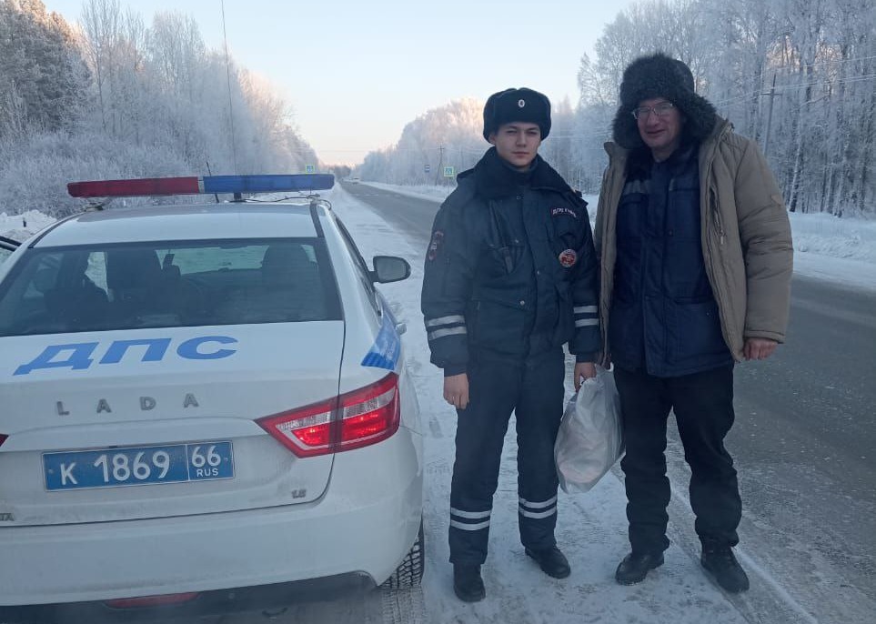 Сотрудники Госавтоинспекции Тавды подобрали местного жителя на трассе в 30-градусный мороз.