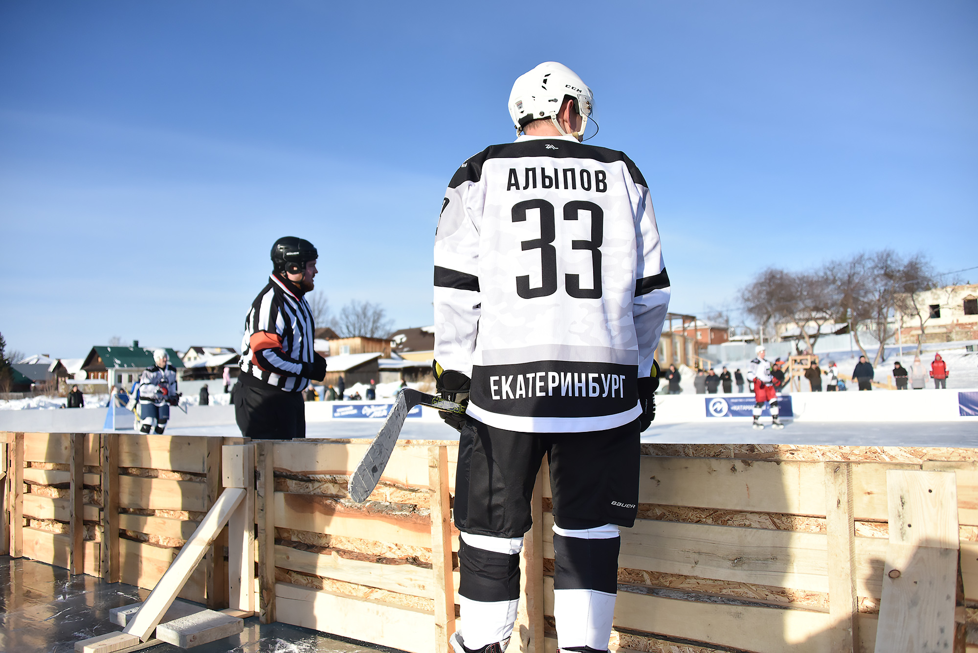 На лед вышли дети и взрослые. Сысерть представили юношеская сборная «Малахит» и хоккейный клуб «Сысерть». За сборную ХК МВД играл лыжник, заслуженный мастер спорта Иван Алыпов.