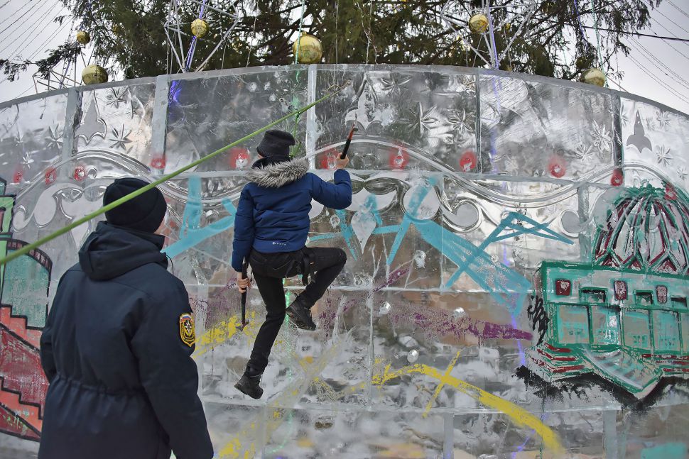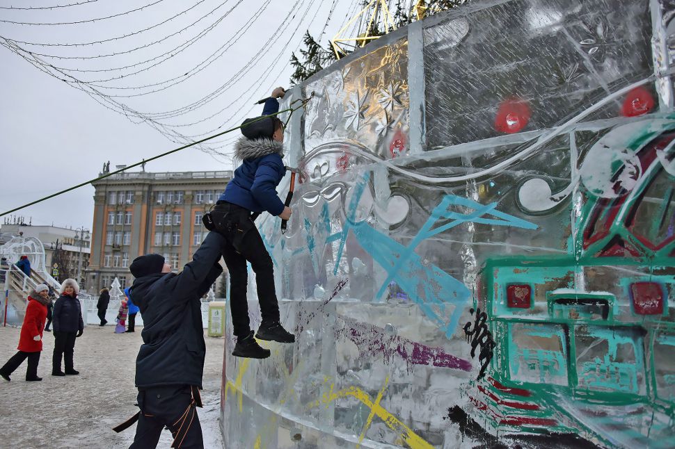 Сегодня, 22 января, в 11:00 начался ежегодный фестиваль «Ледовый штурм». Фигуры, посвященные 300-летию Екатеринбурга разрисовали мастера стрит-арта, а скалолазы приступили к покорению ледяных высот.