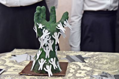 Гостям центра «Синагога» презентовали выставку работ учеников гимназии «Ор Авнер». Дети представили всемирно известные арт-объекты, посвященные памяти жертв геноцида еврейского народа. Также была показана театральная постановка «Забыть не вправе».