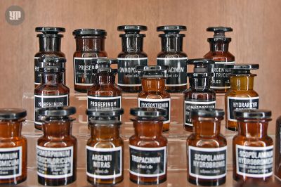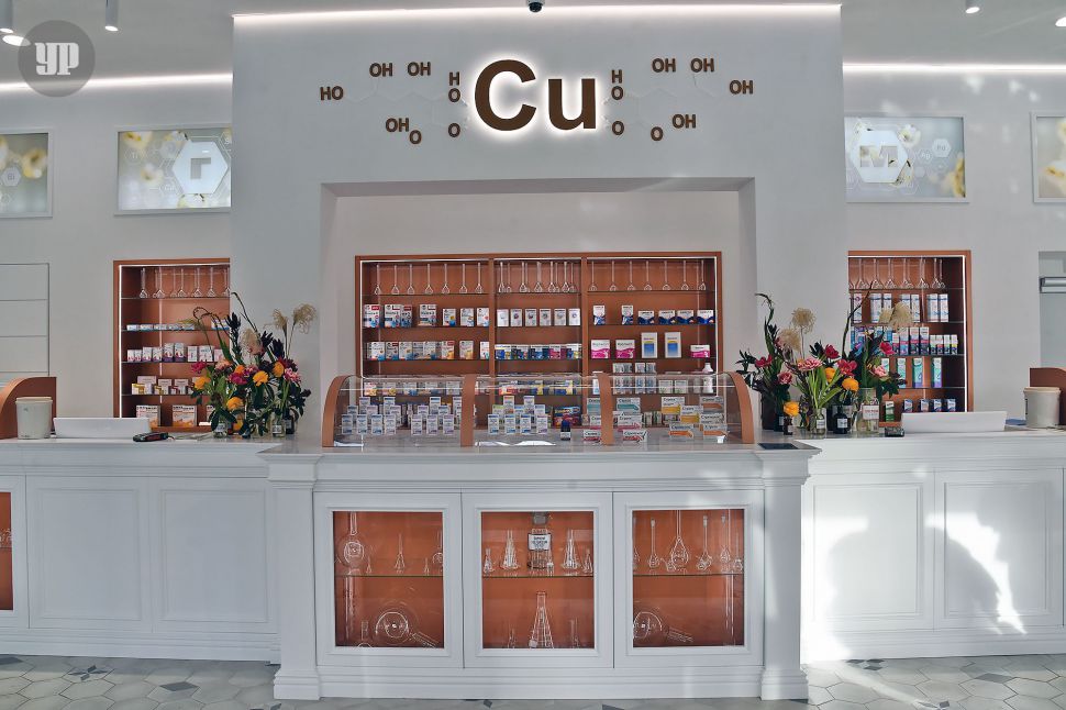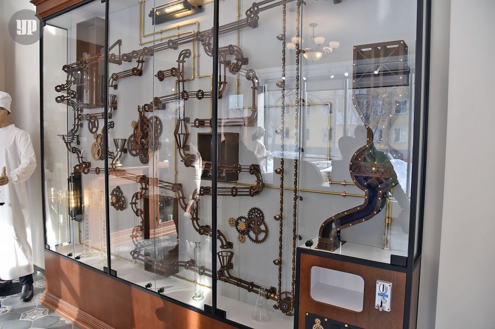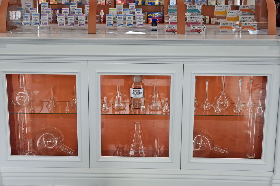 По данным пресс-службы УГМК, старинные предметы для заведения собирали по всей стране. Пространство аптеки украшено мебелью и витринами, созданными по образцам XIX и XX веков.