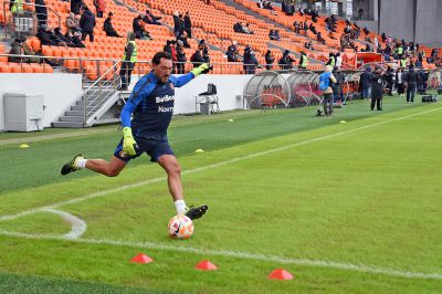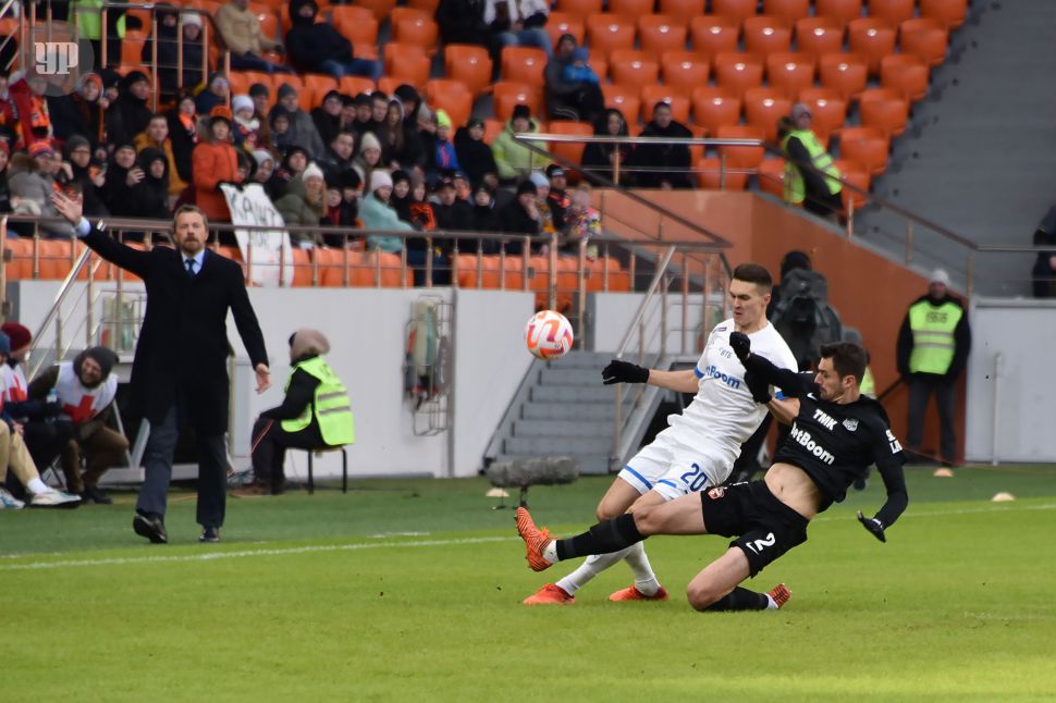 В первом тайме оранжево-черные долгое время владели инициативой, а столичный коллектив предпочитал действовать на контратаках. В одном из таких забегов Арсен Захарян мог открывать счет, но наш вратарь Илья Помазун, который накануне получил вызов в сборную России, спас команду.