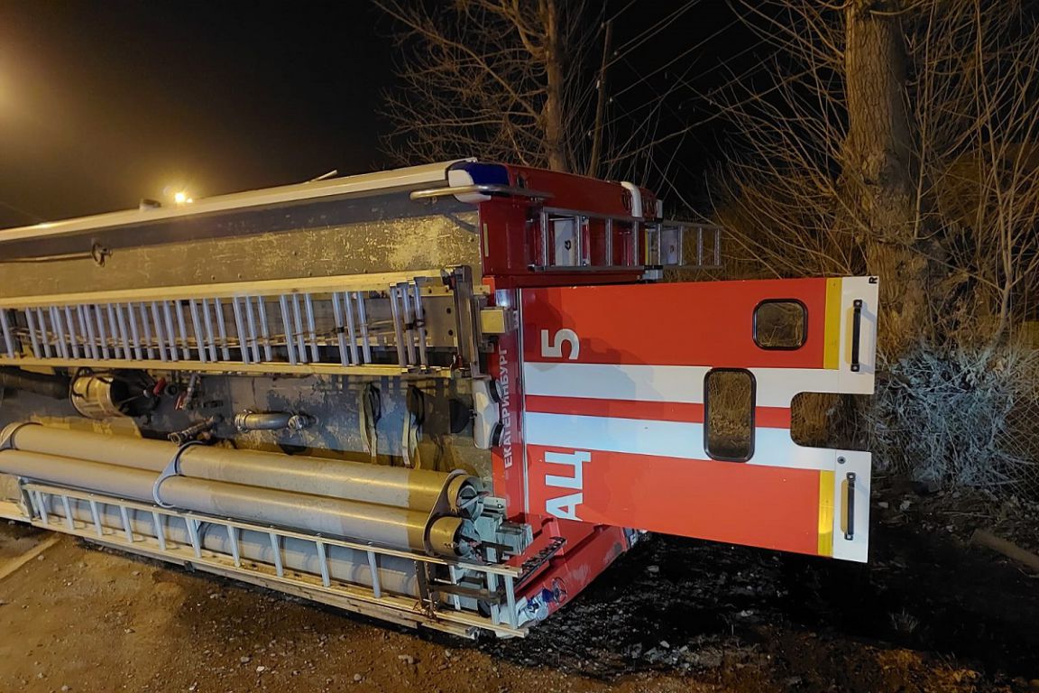 В Екатеринбурге пожарная машина перевернулась после столкновения с Hyundai